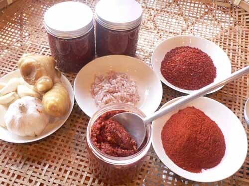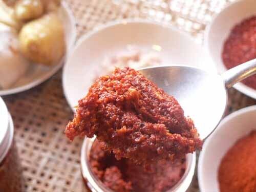 材料は韓国産唐辛子独自ブレンド)、アミ塩辛、ニンニク、生姜、自家製イワシの塩辛(時期によっては入れない場合もあります)、砂糖、など。